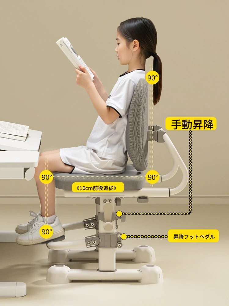 子供用学習チェア - 昇降式で姿勢矯正に最適!小学生向け、家庭用の快適なデスクチェア。調整可能な背もたれで、長時間の勉強も楽々!学びをサポートするデザインです。